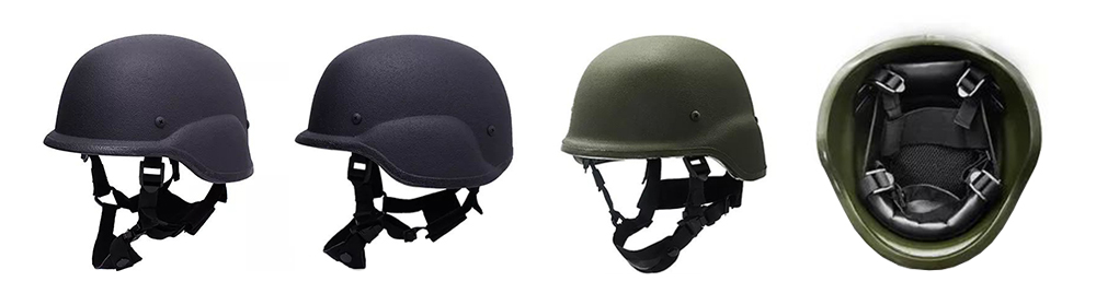 采用芳綸機織布或高強高模聚乙烯無緯布模壓制成盔殼,表面噴涂軍用聚脲彈性體涂層。
